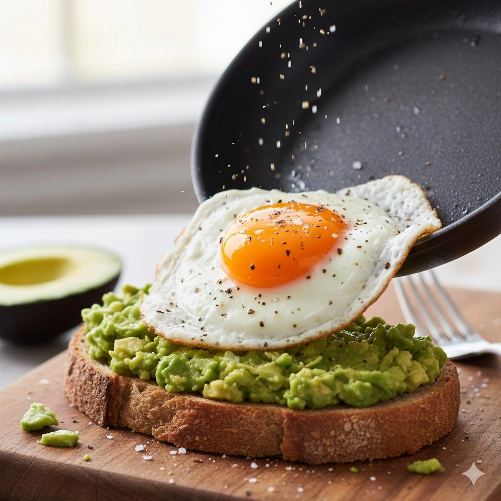 Timing is everything. You want the egg to move from the pan to the toast in one fluid motion. Use a wide, thin spatula to support the weight of the yolk so it doesn’t break prematurely. Seasoning should happen at the very end. The salt helps draw out the flavor of the avocado, while the black pepper provides a necessary bite. If you seasoned the avocado directly, it might oxidize and turn brown faster, so seasoning the top of the egg is the preferred method for both aesthetics and flavor distribution.