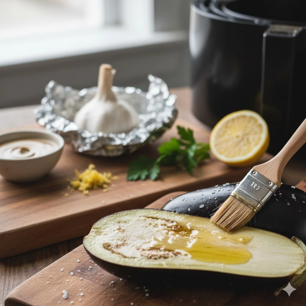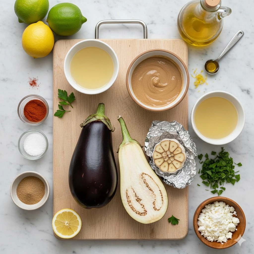 To create an authentic and flavorful Air Fryer Baba Ganoush, you will need a specific set of high-quality ingredients. Each component plays a vital role in balancing the smoky notes of the roasted eggplant with the creamy richness of the tahini and the brightness of the citrus.