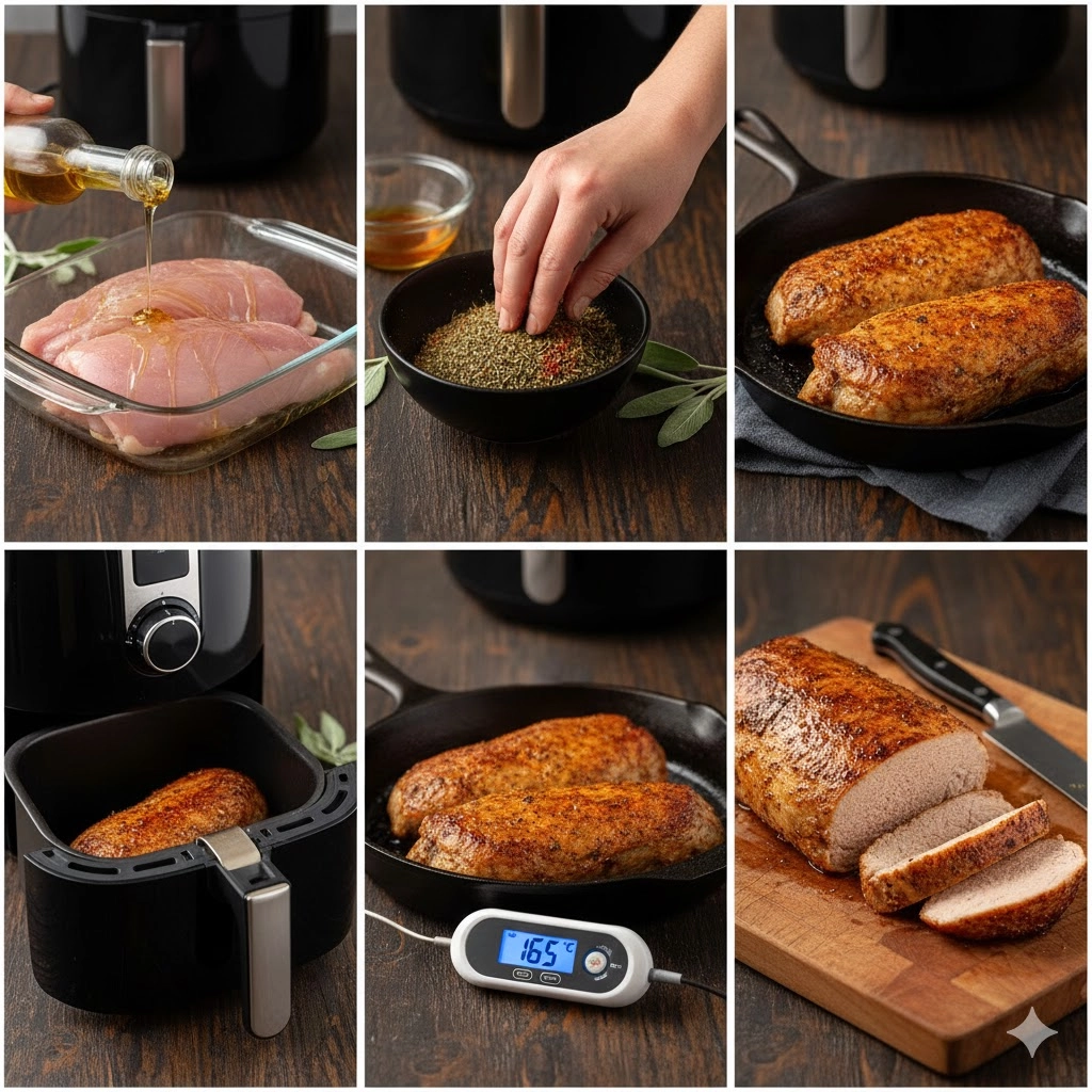Once transferred to the basket, the circulating hot air cooks the meat evenly from all sides. Since turkey tenderloins can vary in thickness, the fifteen-minute mark is a guideline. Around twelve minutes, start checking. You want to see the juices running clear, but the real test is the thermometer. Pulling the meat at exactly one hundred sixty five Fahrenheit prevents the lean protein from becoming chalky or dry.