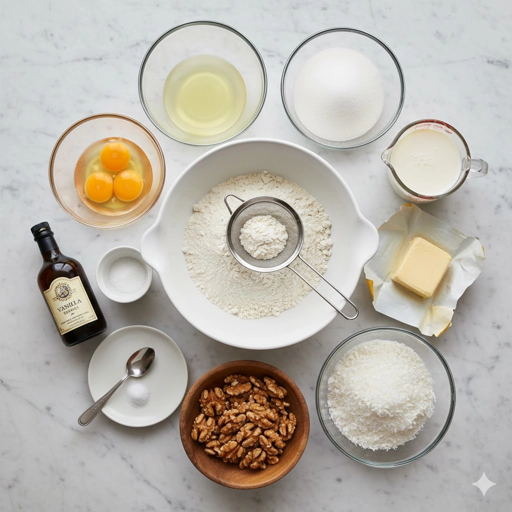- Extract Variations: For a more “wedding cake” flavor profile, try substituting half of the vanilla extract with almond extract. The nuttiness of the almond reinforces the flavor of the walnuts and coconut beautifully.