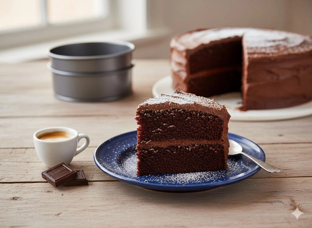 Because this cake is so dark, you cannot rely on visual browning to tell when it is finished. Look for the edges of the cake to just start pulling away from the sides of the pan. When you insert a toothpick, it should come out with perhaps one or two moist crumbs clinging to it, but no wet batter. If the toothpick is completely dry and dusty, the cake is likely overbaked. The surface should spring back slightly when pressed gently with a fingertip.