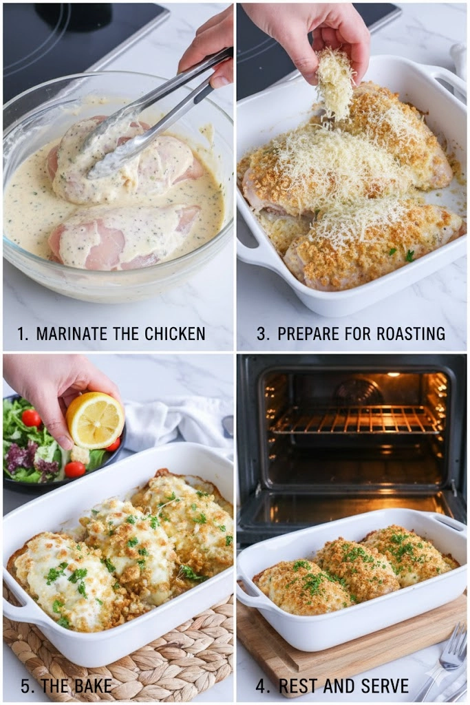 Achieving perfectly tender and flavorful chicken is a simple four-step process centered around marination and gentle baking.