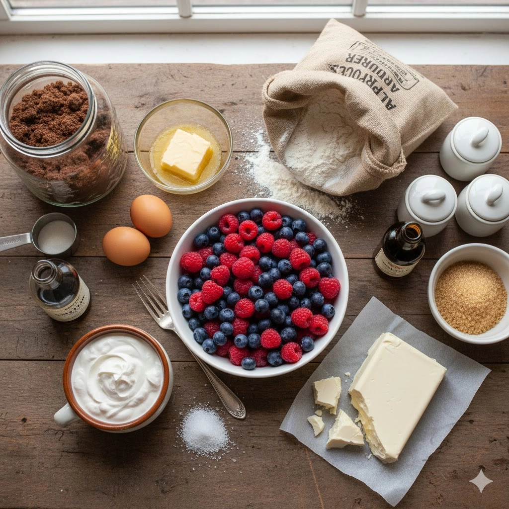 To ensure the best results, gather these specific ingredients. High-quality butter and fresh, vibrant berries make a world of difference in the final flavor profile of this bake.