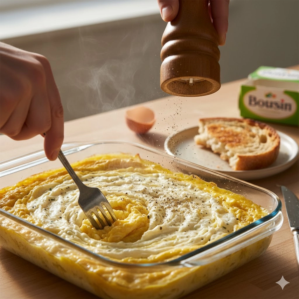 As the moisture in the eggs evaporates, the flavors concentrate. This is why we recommend seasoning with salt and pepper after the bake or very lightly before. The Boursin cheese already contains a significant amount of salt and seasonings, and as the dish bakes, those flavors become more pronounced. Mashing the eggs and cheese together at the end is not just for aesthetics; it’s a mechanical emulsification. You are folding the fats from the cheese into the proteins of the eggs, creating a stable, creamy mass that holds heat much longer than a standard fried or poached egg would.