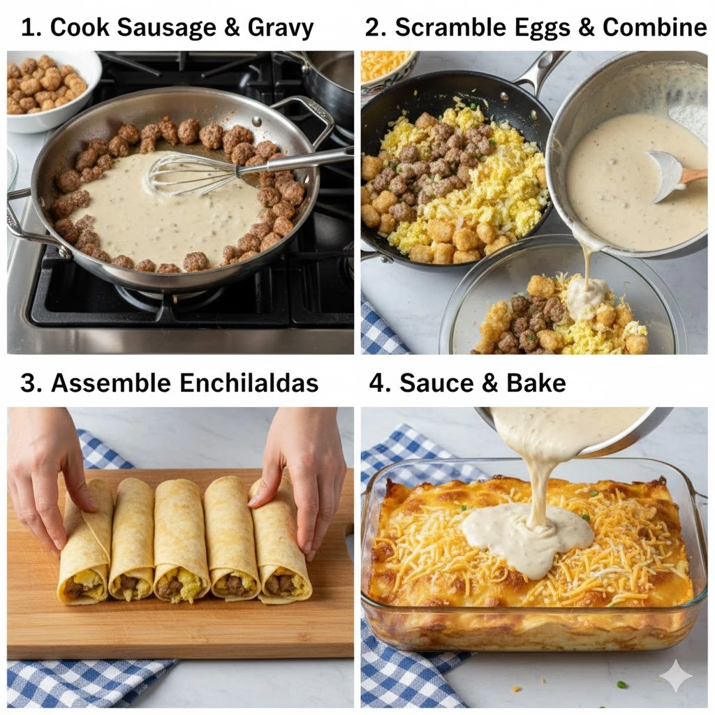 PrintThe Ultimate Make-Ahead Breakfast Enchiladas with Sausage Gravy