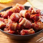 This simple, three-ingredient appetizer features savory miniature sausages wrapped in crispy bacon and coated in a rich, caramelized brown sugar glaze. It’s the ultimate crowd-pleaser for any party or gathering.