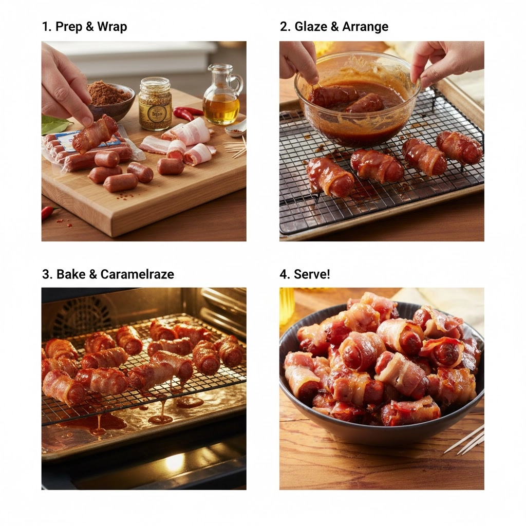 Achieving the perfect texture—crisp bacon surrounding a juicy sausage, all enveloped in a sticky, non-runny glaze—requires attention to detail that goes beyond the basic instructions.