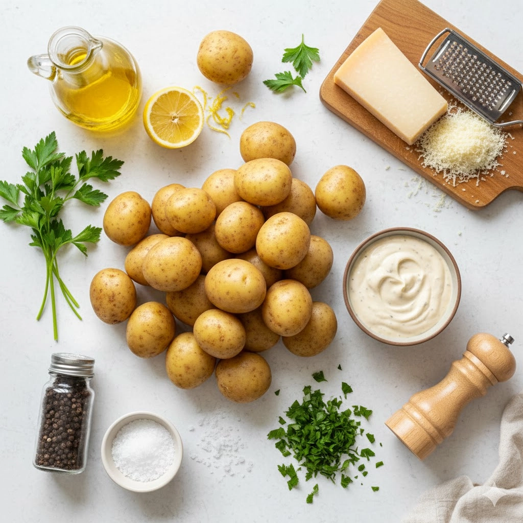 During the first roast at four hundred twenty five Fahrenheit, the potatoes will develop their structural crunch. The high heat renders the starches on the surface. When you pull them out to apply the Caesar dressing, you are essentially “glazing” the potato. The oils and egg yolks in the dressing further fry the surface, while the Parmesan melts into the crevices. The final bake is brief but critical—it should go just long enough for the cheese to turn into a lacy, golden crust that provides a sharp, salty contrast to the earthy potato.