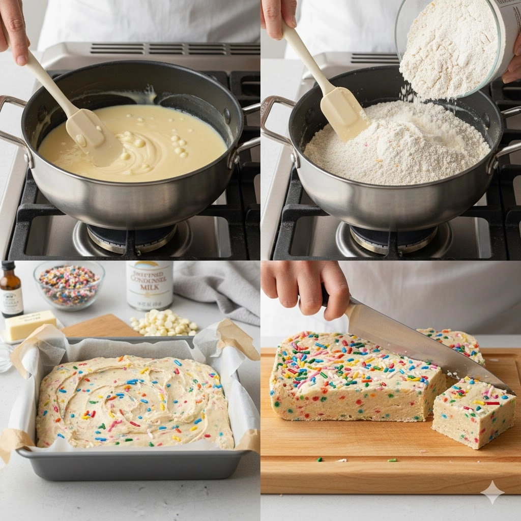 An incredibly simple, no-bake confection that uses dry cake mix and sweetened condensed milk to create a rich, dense, and perfectly structured fudge without the need for a candy thermometer. Ready in minutes and customizable with any flavor cake mix.