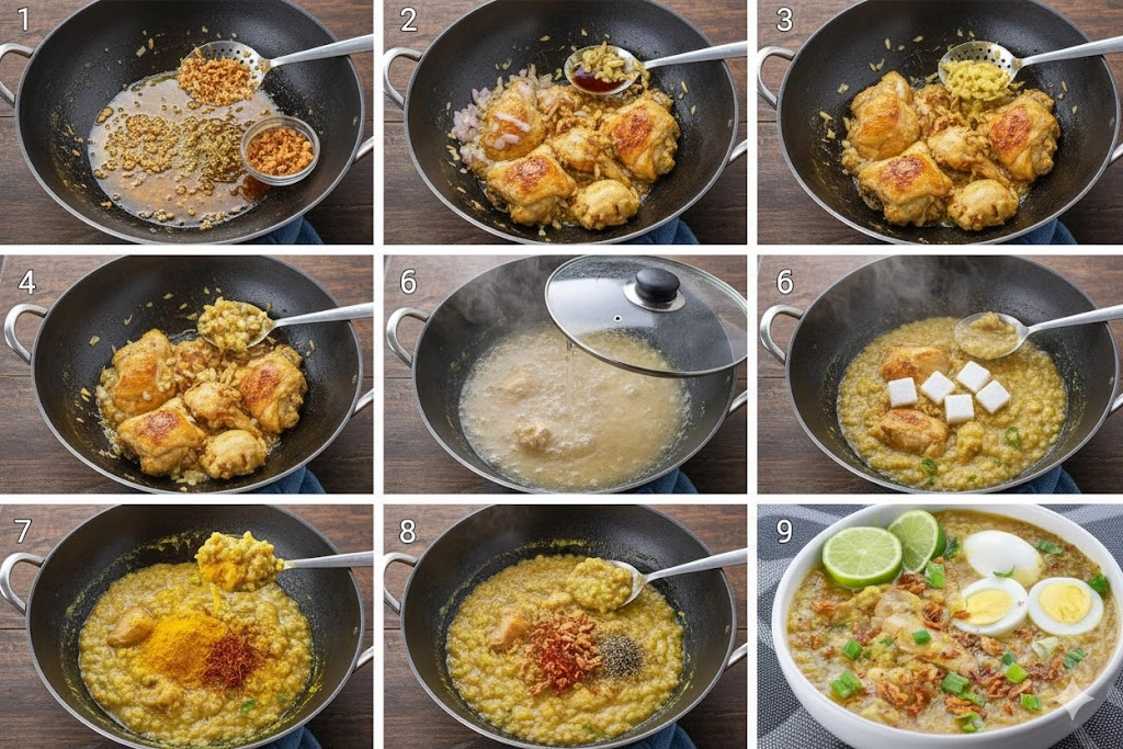Begin by placing your oil and minced garlic into a cold wok or heavy-bottomed pot. By heating them together gradually, you ensure the garlic toasts evenly without the bitter edge that comes from flash-frying. Keep a close eye on the color; as soon as it turns light golden, remove the garlic. The oil left behind is now liquid gold, infused with the essence of toasted alliums which will serve as the foundation for your Chicken Arroz Caldo.