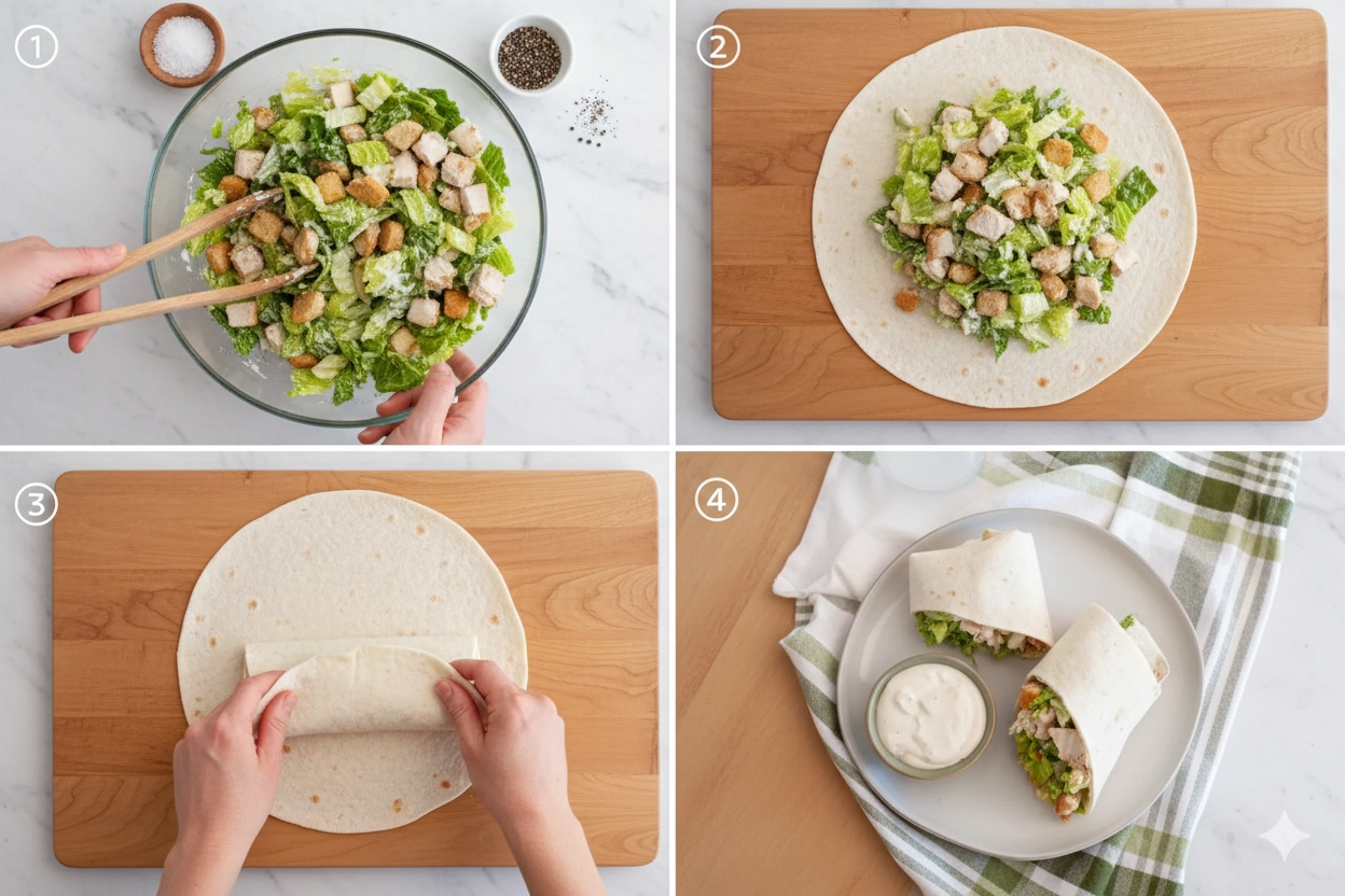 If you are planning to eat these later in the day, consider a “dry-pack” method for the lettuce or go light on the initial dressing. You can always serve an extra small container of dressing on the side for dipping. This preserves the structural integrity of the flour tortilla while still providing that hit of garlic and anchovy-infused flavor that defines the Caesar experience.