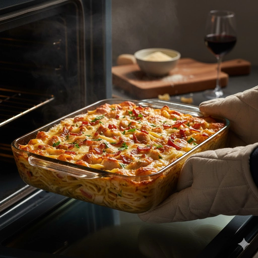 There are few dishes that capture the creamy, savory perfection of Italian comfort cuisine quite like carbonara. This iteration takes that timeless Roman preparation—rich egg yolks, sharp pecorino or Parmesan, and cured pork—and transforms it into a robust, shareable casserole. The Chicken Carbonara Pasta Bake marries the silky texture of the classic sauce with the heartiness of baked pasta, allowing the flavors to meld and deepen under a light, golden crust. It is an exceptional choice for a substantial weekend meal or a celebratory gathering, delivering familiar indulgence without the pressure of having to serve everyone immediately a la minute. It’s a dish that respects tradition while fully embracing the convenience and conviviality of a baked entree.
