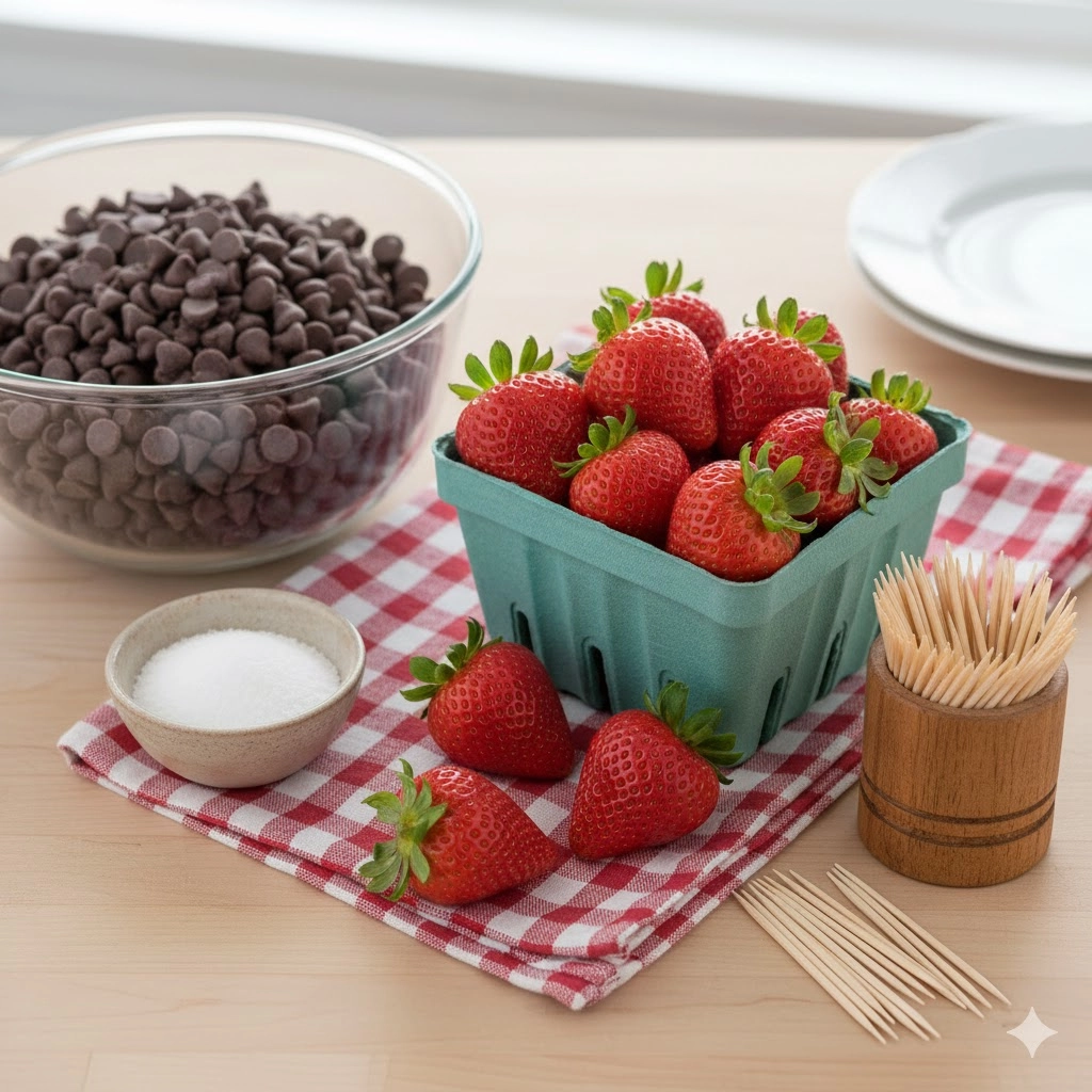 1. Gather all ingredients and ensure strawberries are at room temperature and completely dry.