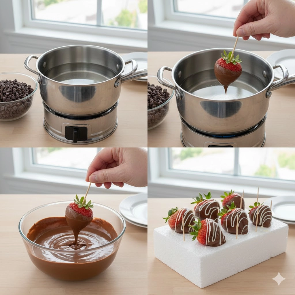 Ensure berries are bone-dry before dipping to prevent seizing.