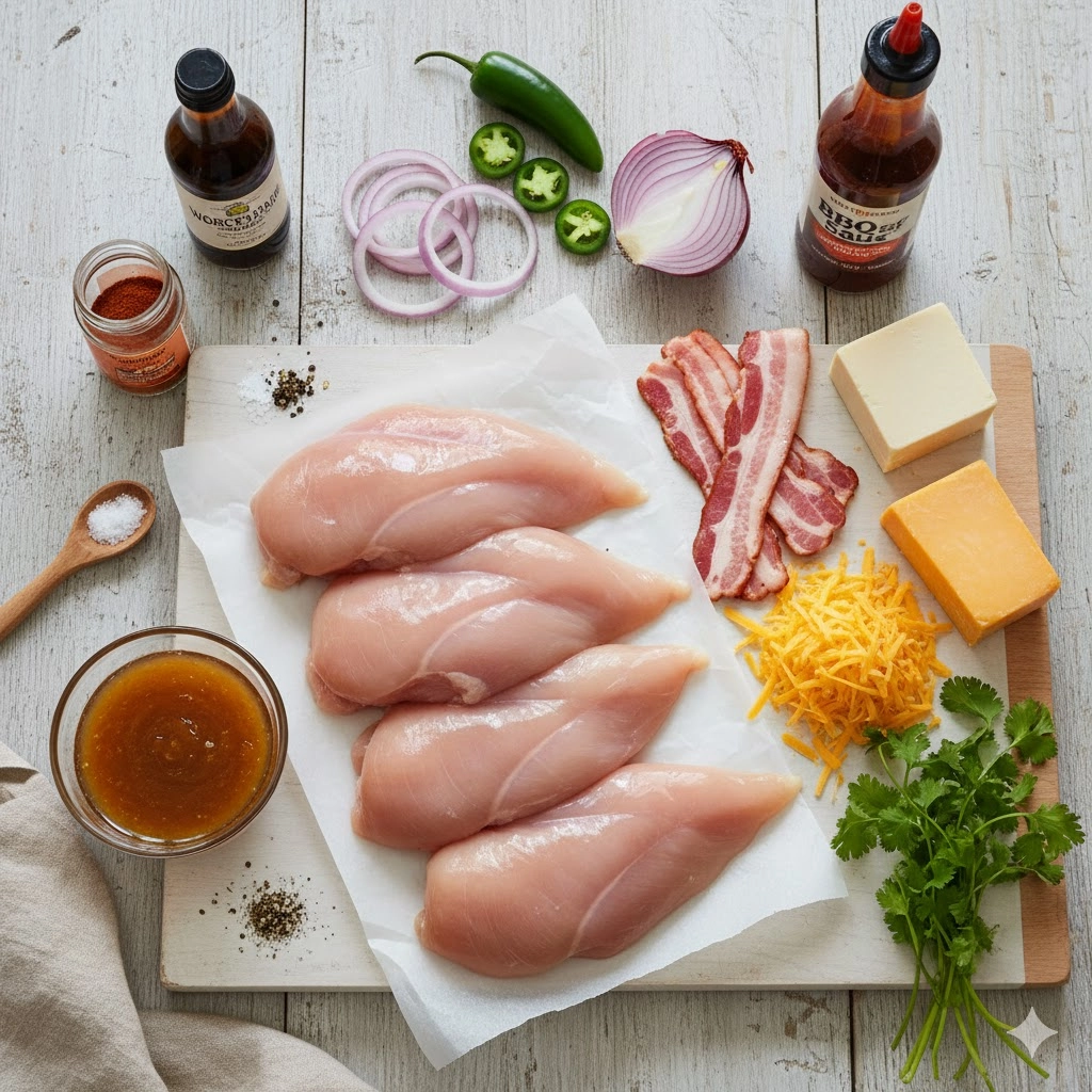 - Marination and Bacon Preparation: Begin by ensuring the chicken breasts are of uniform thickness. This is crucial for even cooking; pound them gently between plastic wrap to achieve a consistent half-inch thickness. In a medium bowl, whisk together the olive oil, Dijon, honey, Worcestershire, smoked paprika, salt, and pepper to create the marinade. Submerge the chicken, coating every piece thoroughly, and allow it to rest in the refrigerator for at least thirty minutes, but no longer than three hours. While the chicken marinates, cook the bacon until it is shatteringly crisp. Drain it on paper towels, reserving two tablespoons of the rendered fat for later use if grilling indoors, and then crumble it into coarse pieces.