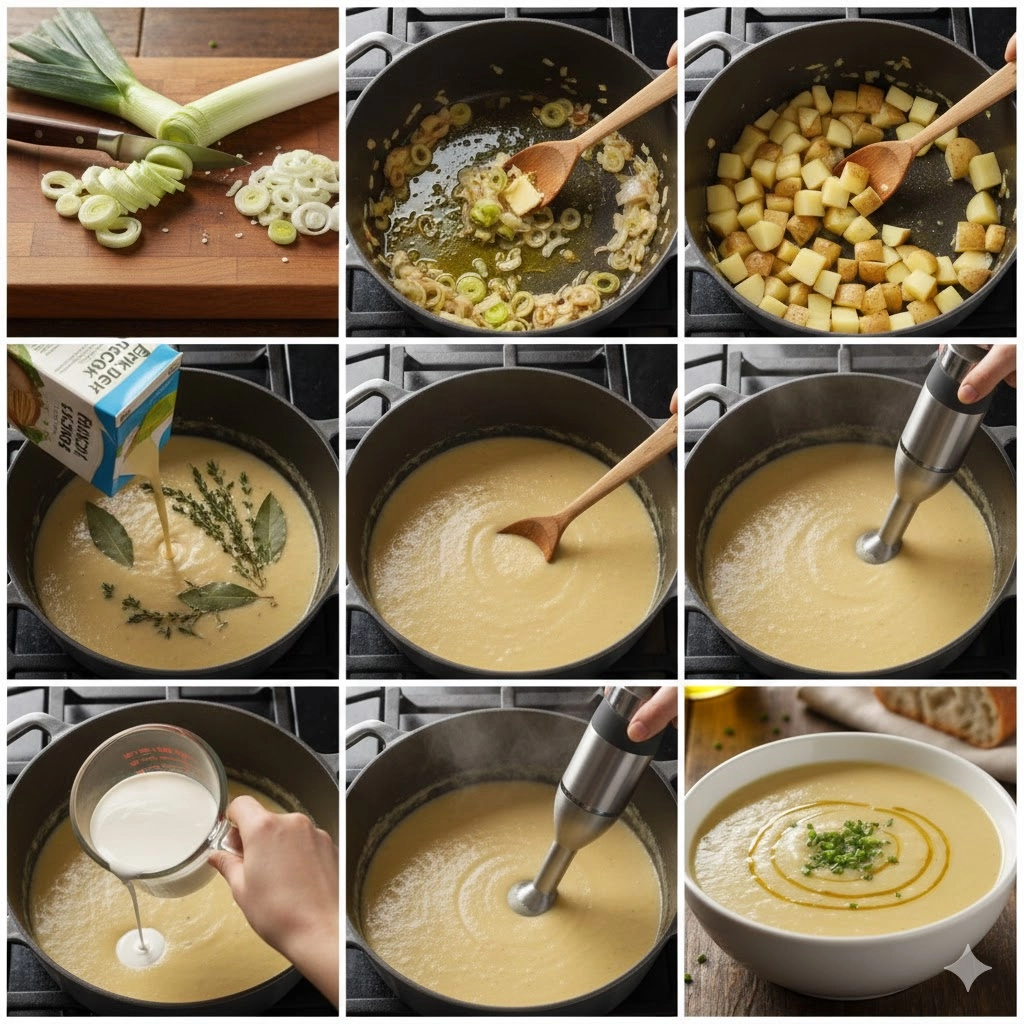 For a modern presentation, consider topping the soup with “textures of leek.” Save a few thin slices of the white leek, toss them in a little flour, and flash-fry them until golden and crispy. These “frizzled leeks” add a wonderful structural element to the dish.