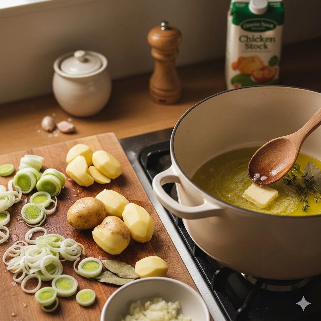 - Smoky Bacon Infusion: Render three strips of thick-cut bacon in the pot before adding the leeks. Remove the crispy bacon to use as a garnish later, but use the rendered fat in place of some of the butter for a deep, smoky undertone.