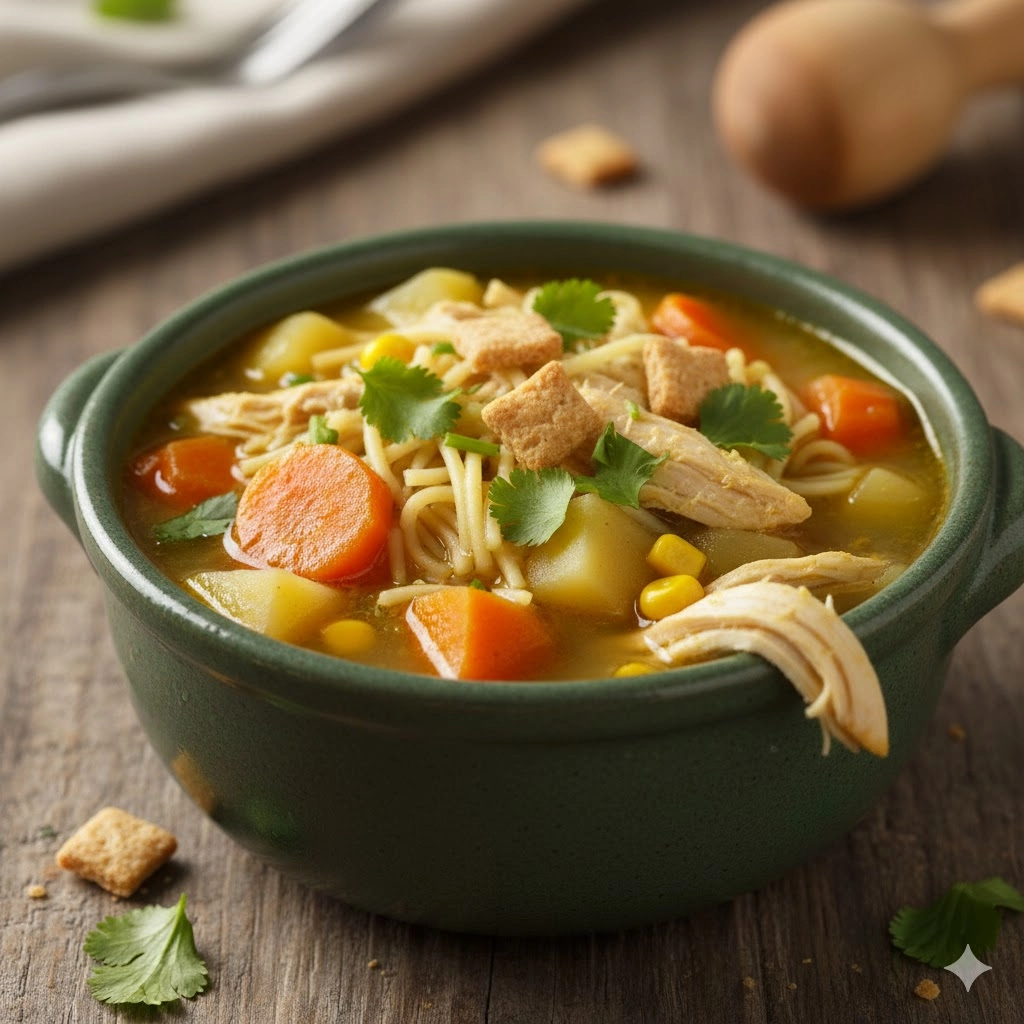 A traditional Caribbean chicken soup made with bone-in poultry, calabaza squash, and a hint of lime for a restorative and flavorful meal.