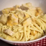 This Easy Chicken Tetrazzini is a streamlined version of the classic American pasta bake, featuring tender chicken and a savory, velvety cream sauce over spaghetti.