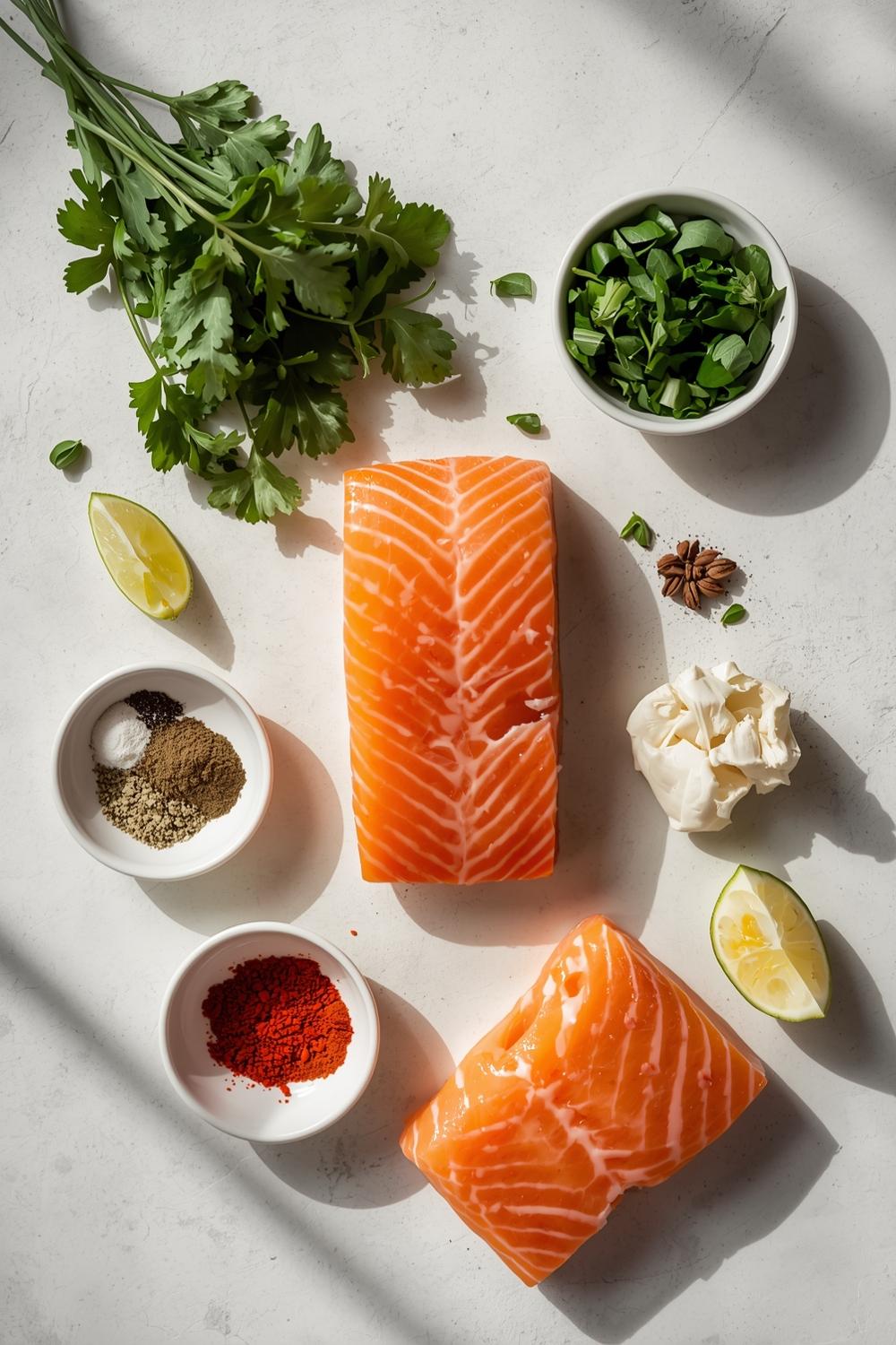 Select premium center-cut salmon fillets (6 oz each, skin-on) for consistent cooking. Pair with: