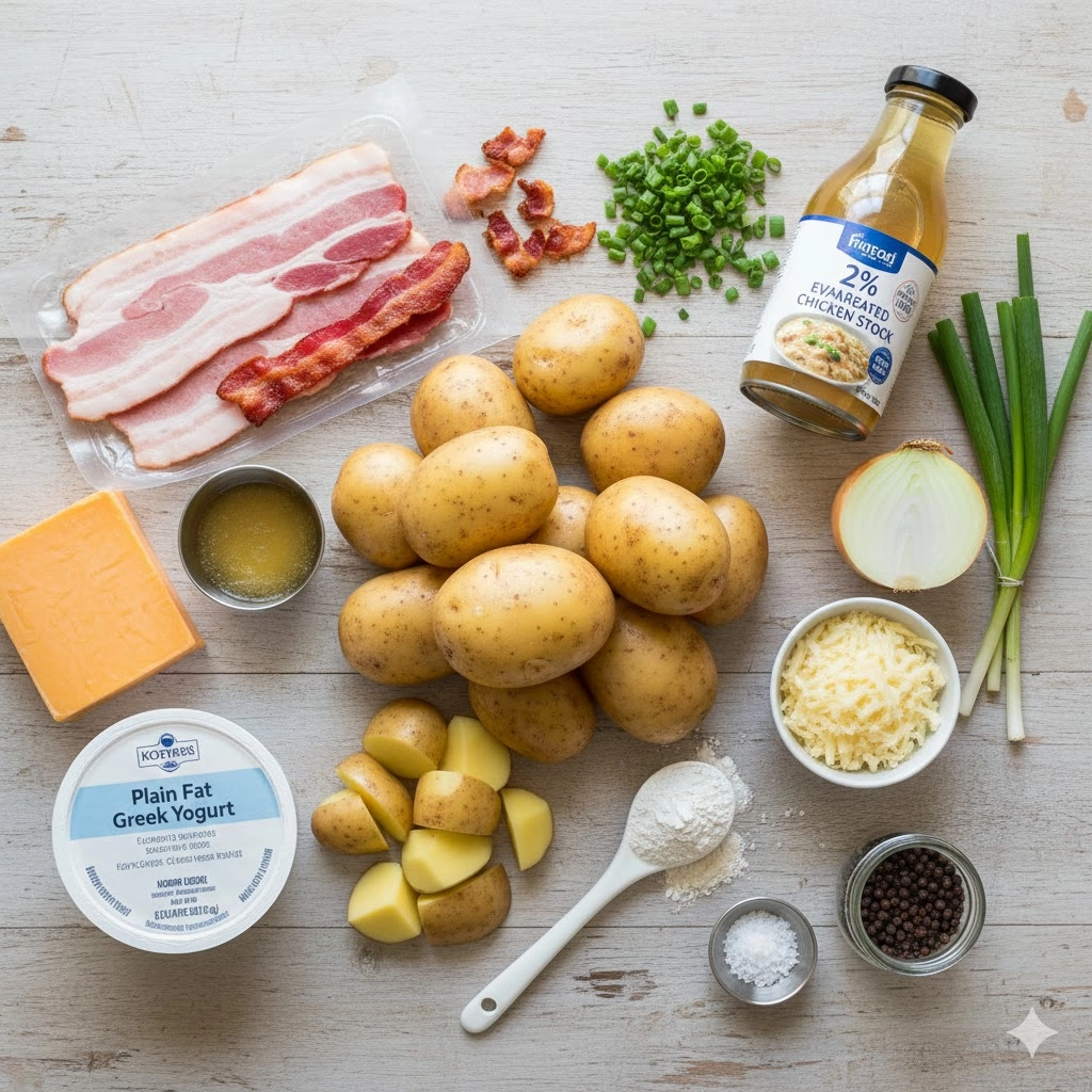 - Optional garnishes: thinly sliced green onions or fresh chives, extra shredded cheddar, crispy bacon bits, and a dollop of sour cream