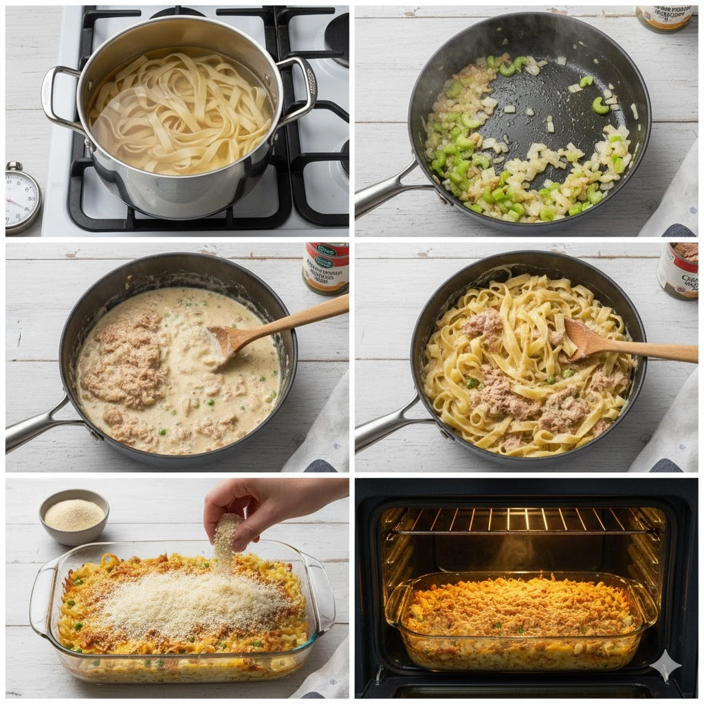 The classic tuna casserole holds a special place in the American culinary canon—it’s the quintessential dish for a comforting, no-fuss dinner. This recipe resurrects that nostalgic favorite, built on a foundation of creamy sauce, tender pasta, and savory flaked tuna, all capped with a satisfying, golden-brown topping. Unlike some versions that can taste thin or overly processed, this approach ensures a rich, deeply flavored sauce that truly elevates the humble ingredients. It is the perfect meal for busy evenings when you need something hearty on the table in under an hour, or as a cozy dish to share on a cold, rainy Sunday. This Easy Tuna Casserole delivers on flavor, texture, and pure, uncomplicated satisfaction.