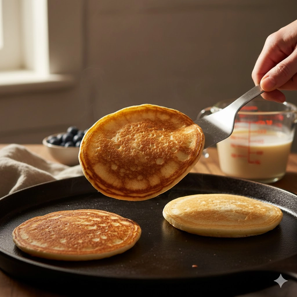 Finally, the heat management of your skillet is a skill that comes with practice. Medium heat is the “Goldilocks” zone. If the pan is too hot, the exterior will burn before the interior has a chance to rise and set. If the pan is too cool, the pancakes will sit too long, becoming heavy and absorbing too much grease. You will know you have reached the perfect temperature when a drop of water flicked onto the surface dances and sizzles before evaporating.