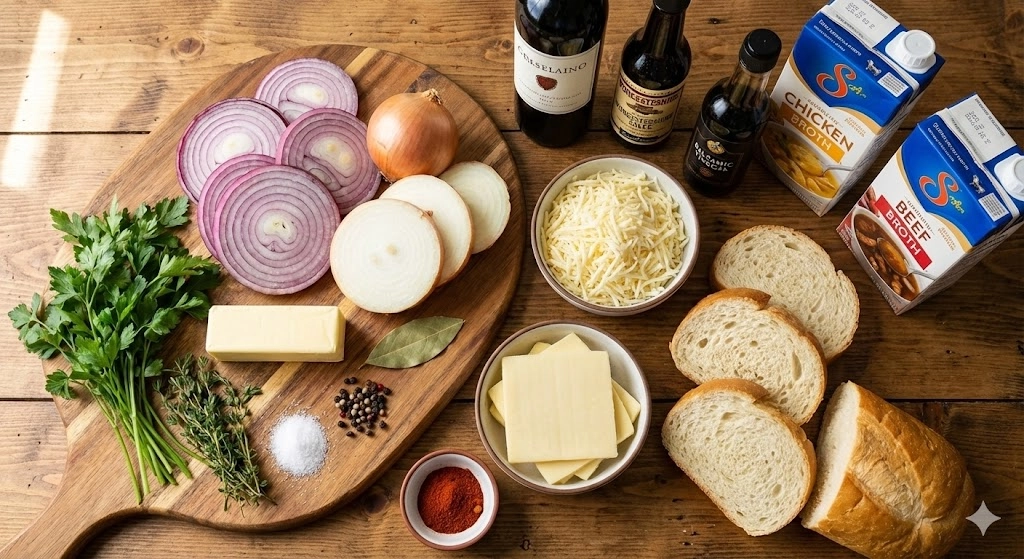 The choice of using both red and sweet onions is deliberate. Sweet onions, like Vidalias, provide a high sugar content that creates that syrupy, jam-like texture. Red onions, on the other hand, offer a slightly sharper bite and a deep color that adds visual complexity to the final broth. As you stir the onions over the course of 35 minutes, you will notice them transition from translucent to a pale gold, and eventually to a deep, mahogany brown. This is where the foundation of the soup’s flavor is built.