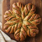 This stunning centerpiece of bread, known as Garlic-and-Herb Star Bread, is more than just a baked good; it’s an edible sculpture that manages to be both rustic and elegant. Imagine the aroma of freshly baked enriched dough mixed with potent garlic, sharp Parmesan, and a blend of vibrant herbs filling your kitchen—that is the promise of this loaf. It’s a tear-and-share bread, perfect for an intimate gathering or a holiday appetizer table, offering individual, buttery twists that practically beg to be dipped into marinara or a warm olive oil blend. While its twisted, radial appearance suggests complexity, the technique is surprisingly straightforward, relying on simple layering and cutting to create its spectacular shape.