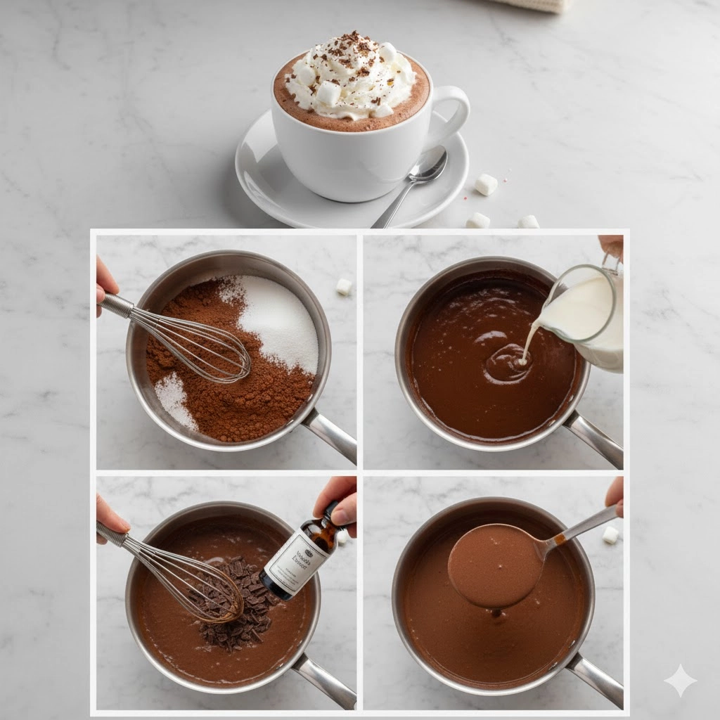 Following these steps ensures that your homemade hot chocolate is smooth and decadent, never grainy or scorched. The key is to dissolve the dry ingredients thoroughly before introducing the main dairy component.
