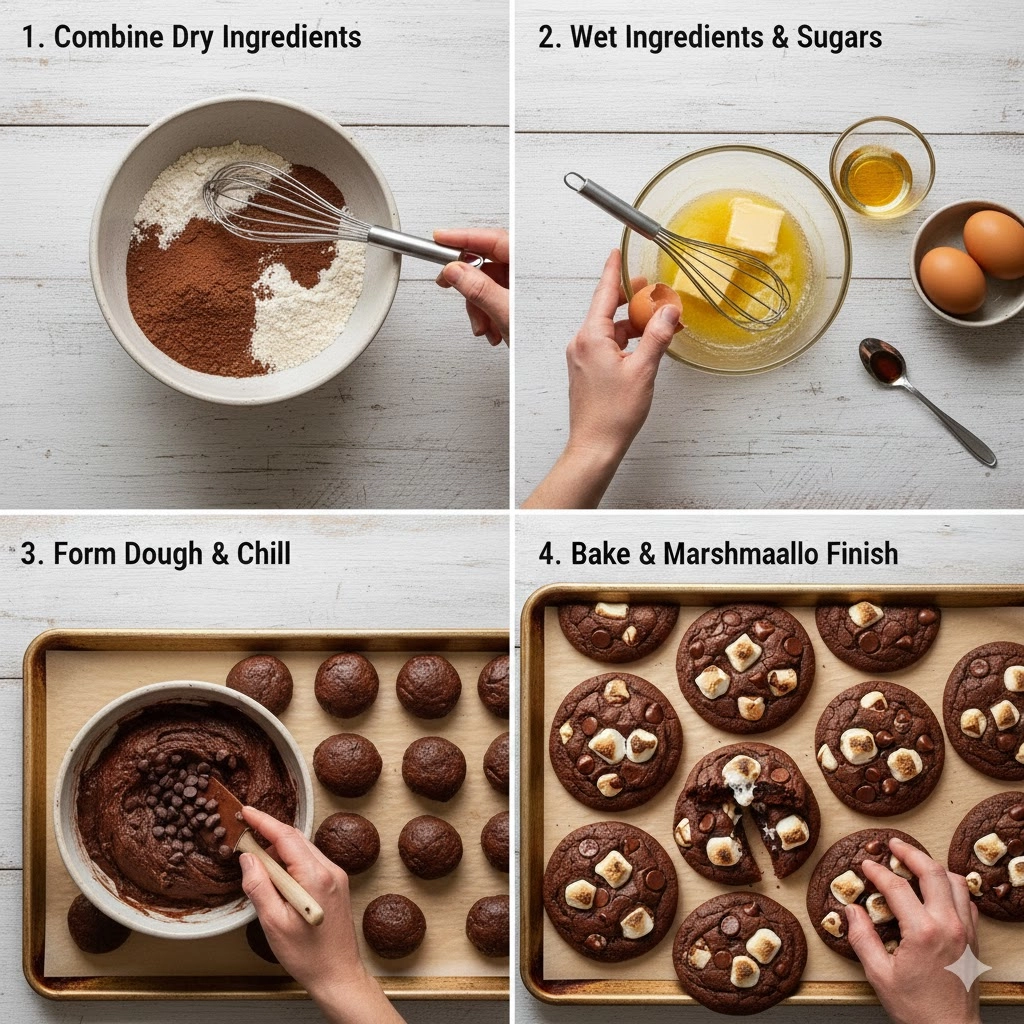 - Marshmallow Finish: Remove the pans, quickly press six to eight mini marshmallows into the top of each cookie, and return to the oven for two to three minutes until the marshmallows are puffed and lightly golden.