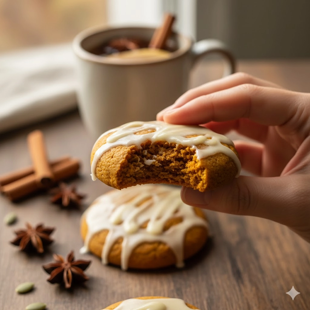 Pumpkin cookies are naturally cakey due to the moisture in the pumpkin. However, if they feel too much like a muffin, it might be due to over-mixing the flour. When you add the dry ingredients, mix only until the white streaks of flour disappear. Over-mixing develops the gluten, which can lead to a tougher, more bread-like texture rather than a soft cookie crumb.