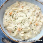 Store any remaining soup in an airtight container in the refrigerator for up to three days. Note that the noodles will continue to absorb the liquid as the soup sits, so you may need to add a splash of broth or milk when reheating to regain the creamy consistency.