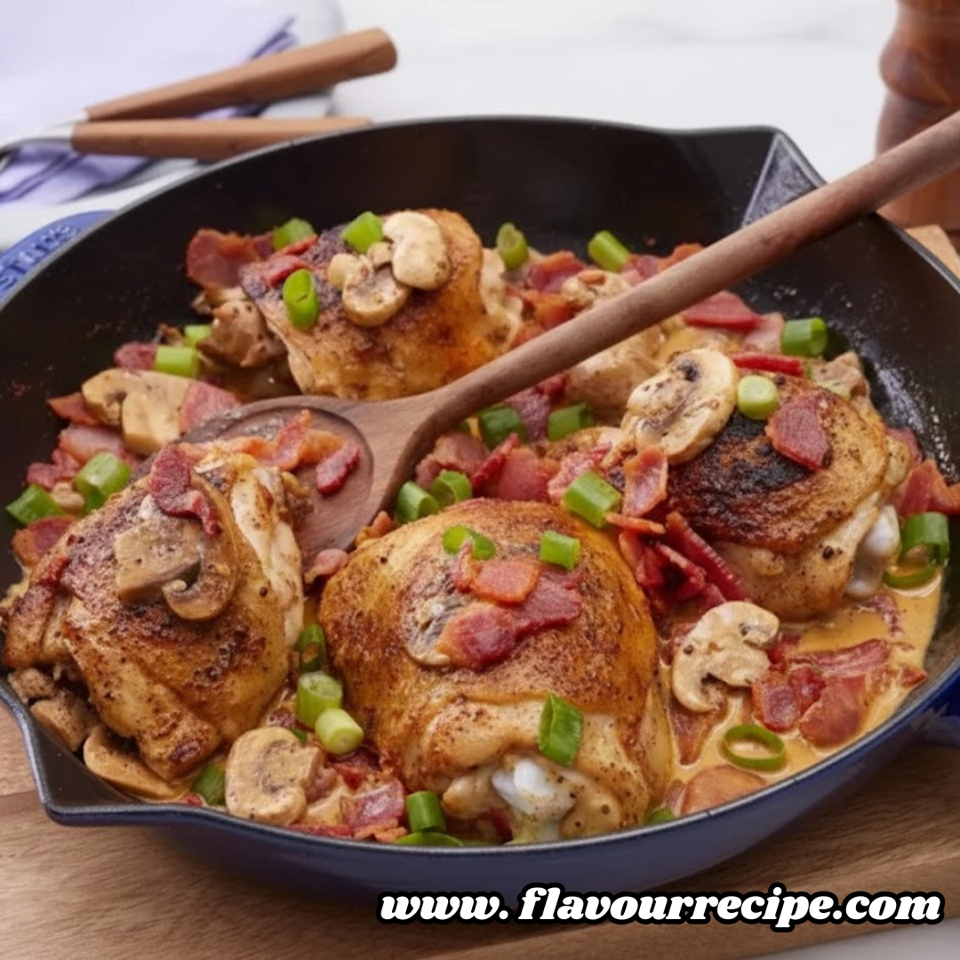 Savory Keto Smothered Chicken Thighs with Bacon and Mushrooms