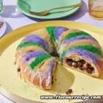 This pastry is traditionally enjoyed as a breakfast treat or a mid-afternoon snack alongside a steaming cup of chicory coffee. Because it is quite rich, slices are usually kept thin. If you are serving this at a party, it is customary to explain the “baby” rule: whoever finds the hidden trinket is crowned king or queen for the day and is tasked with providing the Mardi Gras King Cake for the next gathering. For a more formal dessert, serve a slice slightly warmed with a dollop of lightly sweetened whipped cream.