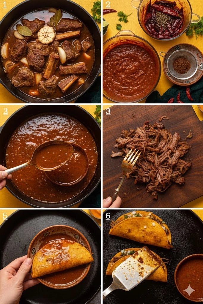- Combine and Simmer: Strain the chile paste into the pot with the cooked beef and a portion of the reserved cooking liquid, then simmer briefly to marry the flavors.