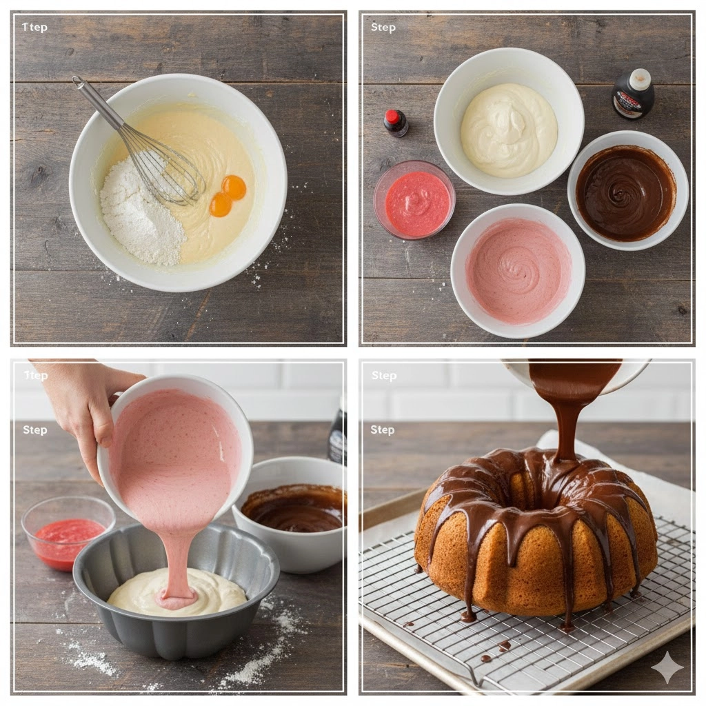 PrintThe Ultimate Neapolitan Cake: A Nostalgic Tri-Color Bundt Masterpiece