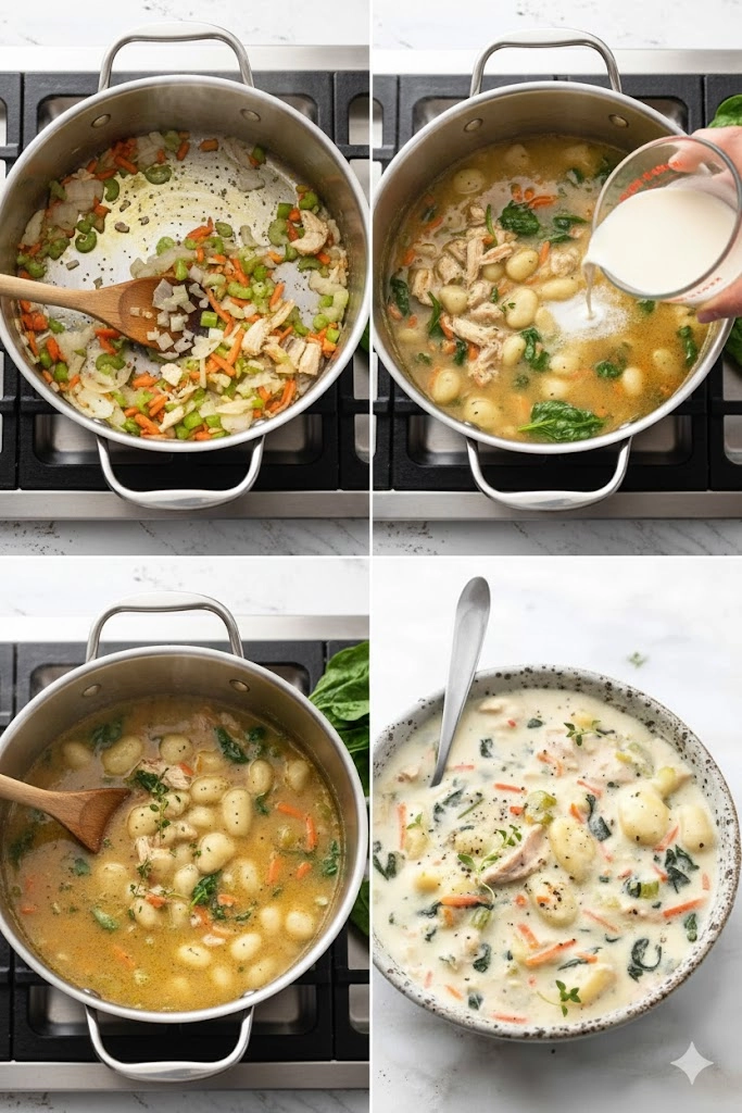 Follow these precise steps to ensure your soup has the correct texture and depth of flavor. The sequence is designed to soften the aromatics while keeping the gnocchi tender and the broth perfectly emulsified.