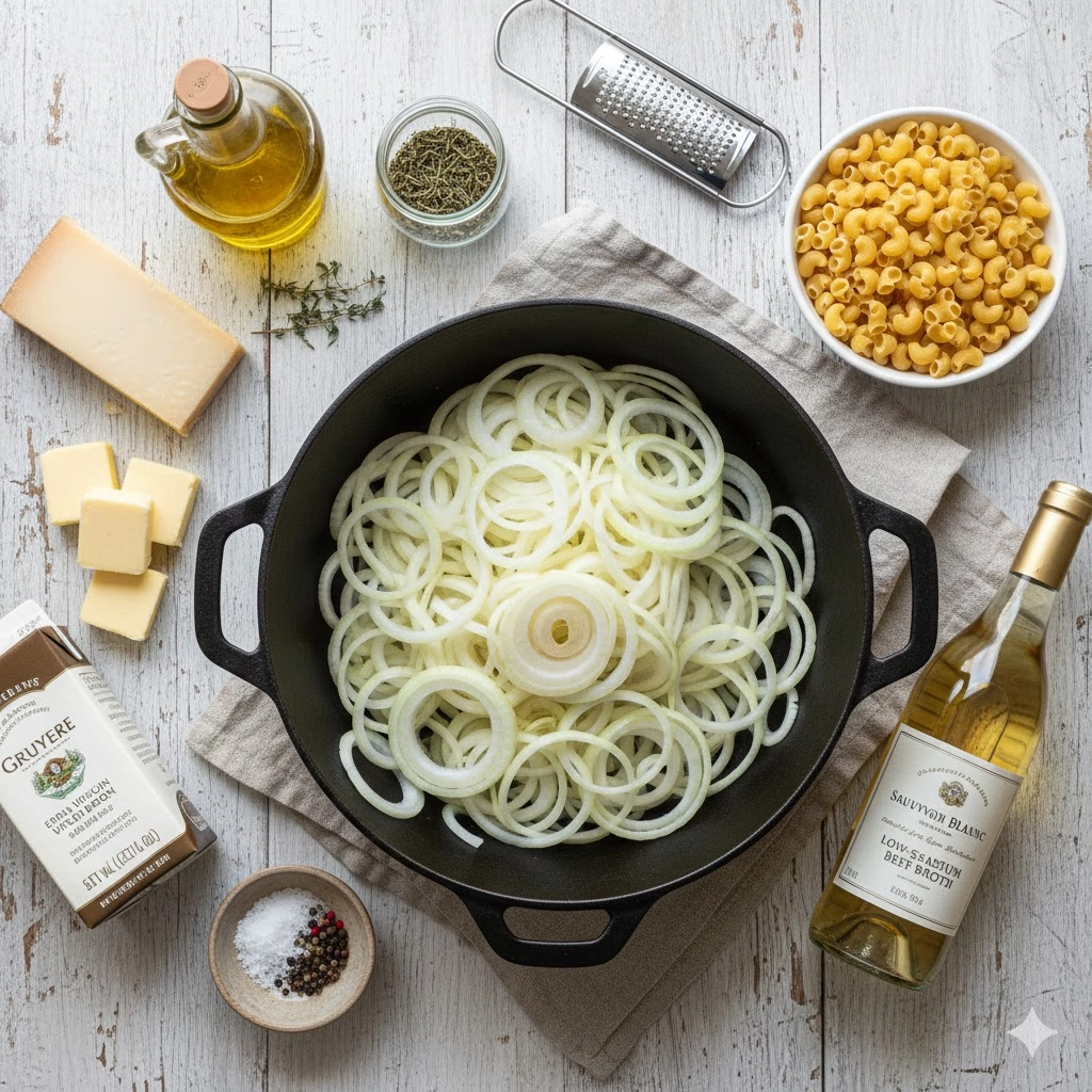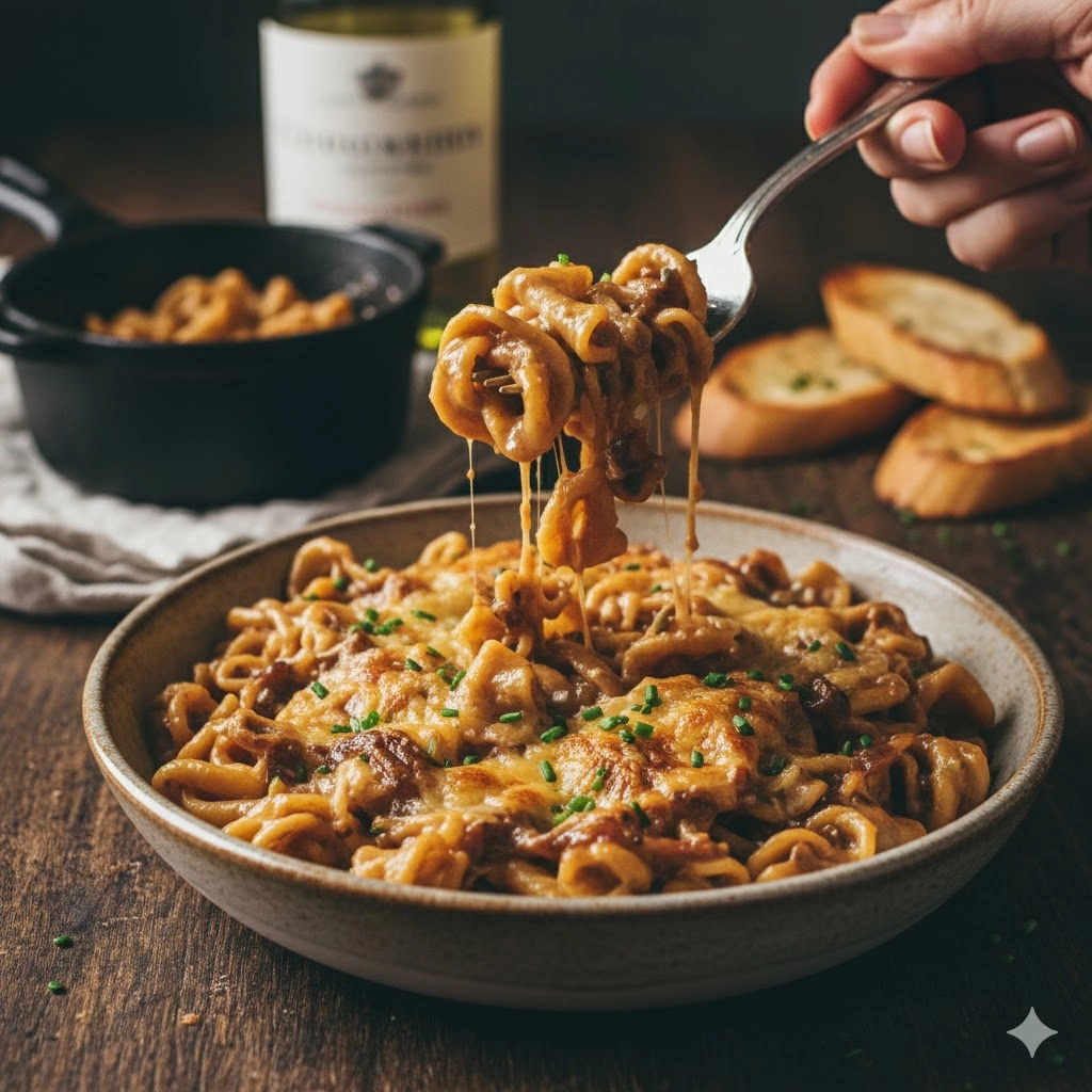 - The Traditional Crust: To truly echo the classic soup, consider serving the pasta in individual bowls, topping each serving with a thick slice of toasted baguette or sourdough bread. A final, generous sprinkle of Gruyère can be added to the top of the bread and placed under the broiler for one minute until bubbling and golden brown.