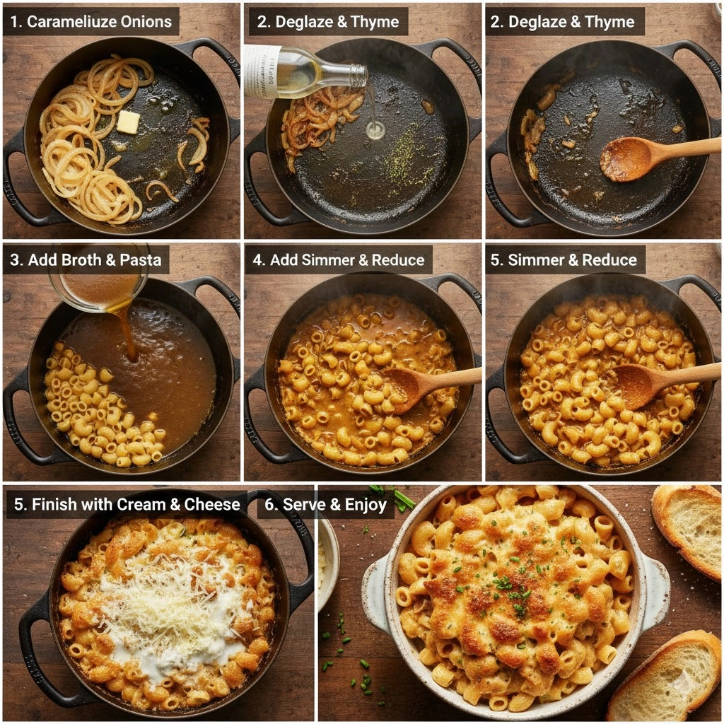 The deep, satisfying flavor of classic French onion soup is a beautiful thing—but let’s be honest, the careful, slow caramelization of onions and the precise layering of flavors can feel like a weekend-only project. This recipe for One Pot French Onion Pasta takes that foundational taste—the savory, slightly sweet, rich, and utterly comforting essence—and translates it into a weeknight-friendly meal. By transforming the traditional soup into a creamy, luscious sauce that cooks right alongside the pasta, we achieve that complex depth with remarkable efficiency. It’s the ultimate comfort food hack, delivering a familiar warmth that elevates an ordinary bowl of noodles into something truly memorable, perfect for a cozy dinner when time is short but cravings for rich, sophisticated flavor are high.