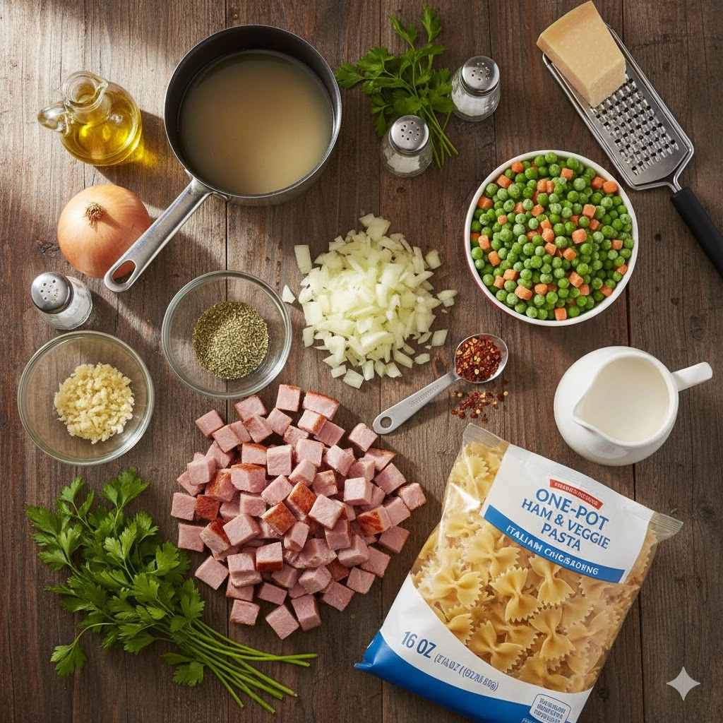 This One-Pot Ham and Veggie Pasta is a savory, creamy dinner solution that uses simple pantry staples and leftover ham. Everything cooks in one pot for a rich sauce and easy cleanup.