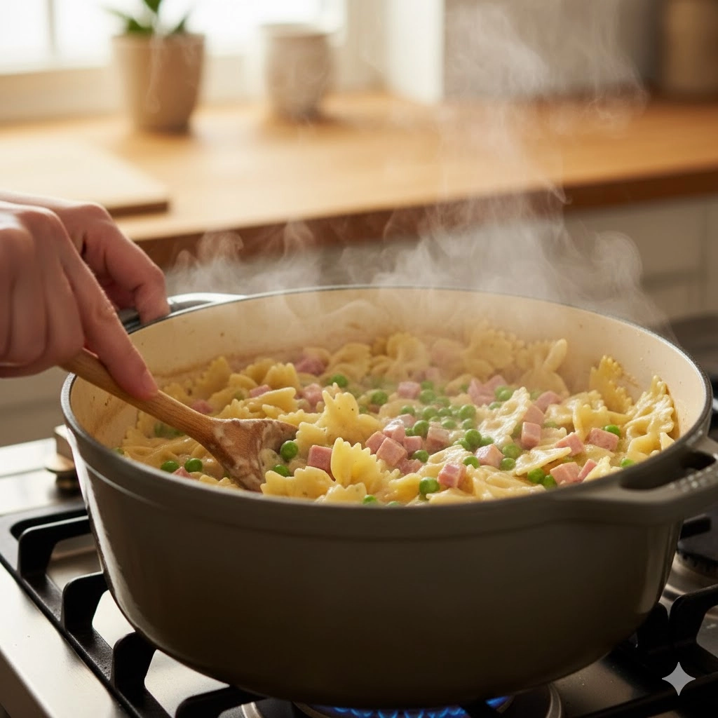 Utilizing pantry staples and leftover proteins often results in the most satisfying kitchen victories, particularly when cleanup is kept to a single vessel. This One-Pot Ham and Veggie Pasta combines savory cured ham with a medley of garden vegetables in a sauce that thickens naturally as the starch from the farfalle releases into the simmering broth. It is an efficient solution for busy evenings where a balanced meal is required without the logistical hurdle of boiling water in one pot and sautéing in another. The result is a cohesive, silkily coated pasta dish that feels substantial yet surprisingly light.