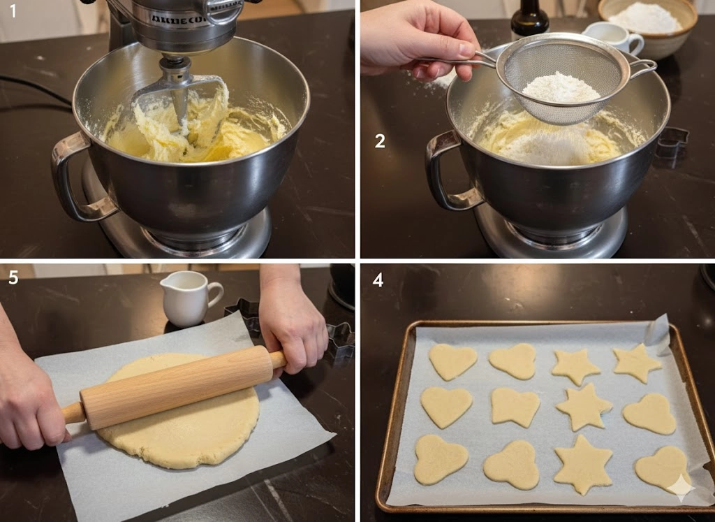 One of the primary mistakes in cut-out cookies is using too much “bench flour.” If the dough absorbs extra flour during rolling, it becomes dry and prone to cracking. To prevent this, you can roll the dough between two sheets of parchment paper. This allows you to achieve that perfect one quarter inch thickness without changing the ratio of the ingredients. If the dough feels too soft to handle, slide the entire rolled sheet onto a tray and chill it in the refrigerator for twenty minutes before using your cutters.