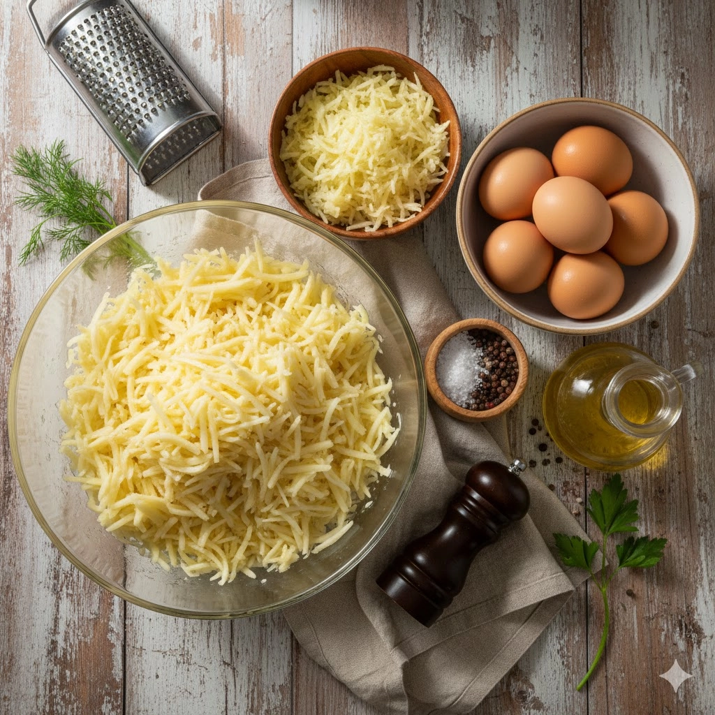 - Oxidation Control: Potatoes turn grey quickly once grated. To maintain a bright interior, grate your onions first and mix them into the potatoes as you go; the acidity in the onions helps prevent the potatoes from discoloring.