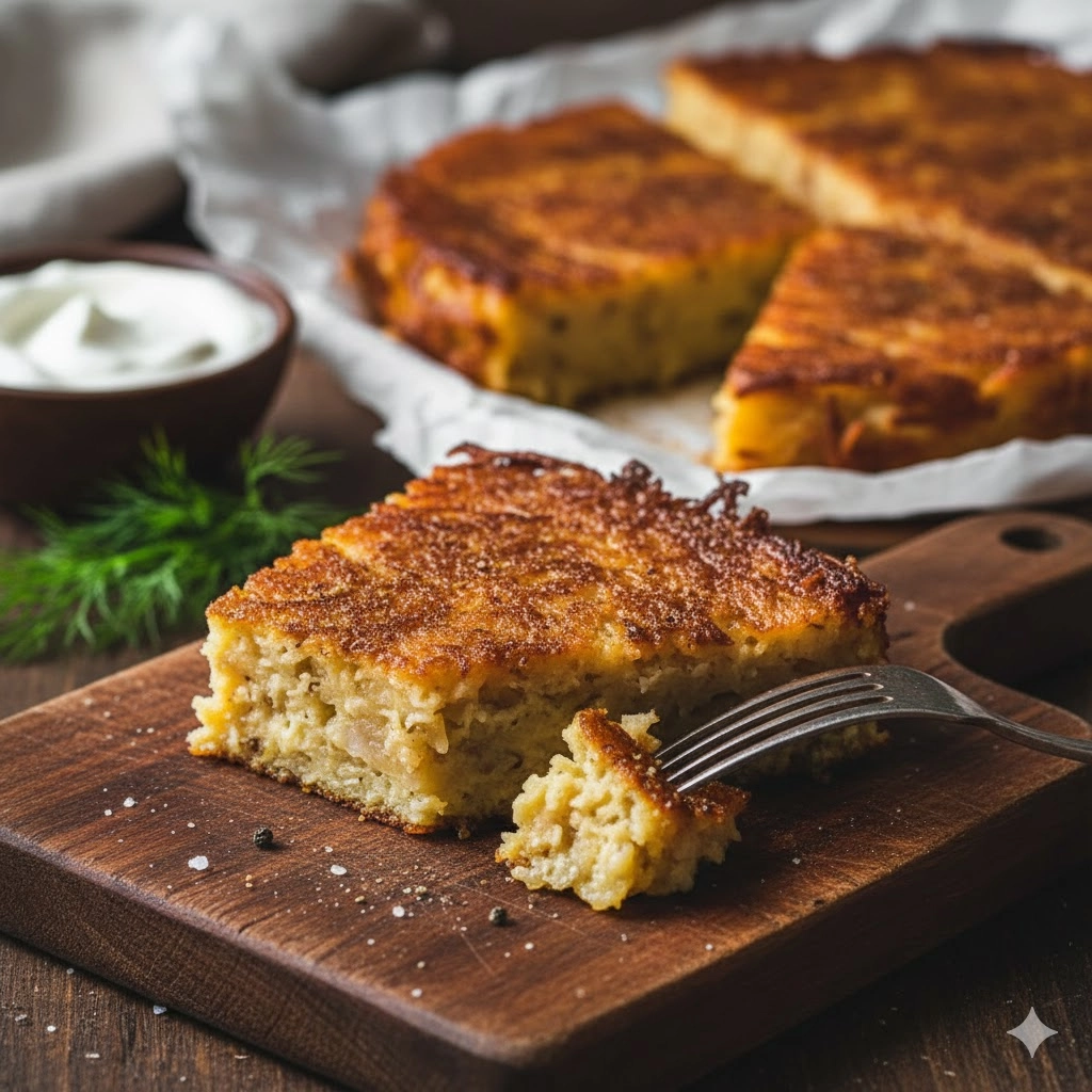 Traditional Ashkenazi cuisine relies heavily on the humble tuber, transforming it into architectural feats of texture and flavor. This Potato Kugel represents the pinnacle of that tradition, offering a dense, velvety interior contrasted by a deeply bronzed, shattered-glass crust. Unlike a gratin or a hash, a proper kugel utilizes the natural starches of the potato to bind the dish into a cohesive, custard-like savory cake. It is a staple of holiday tables and communal gatherings, prized for its ability to satisfy a crowd while remaining remarkably elegant in its simplicity. Whether served as a side for a roasted brisket or enjoyed as a standalone snack with a dollop of cool sour cream, this dish exemplifies the beauty of slow-roasting seasonal staples.