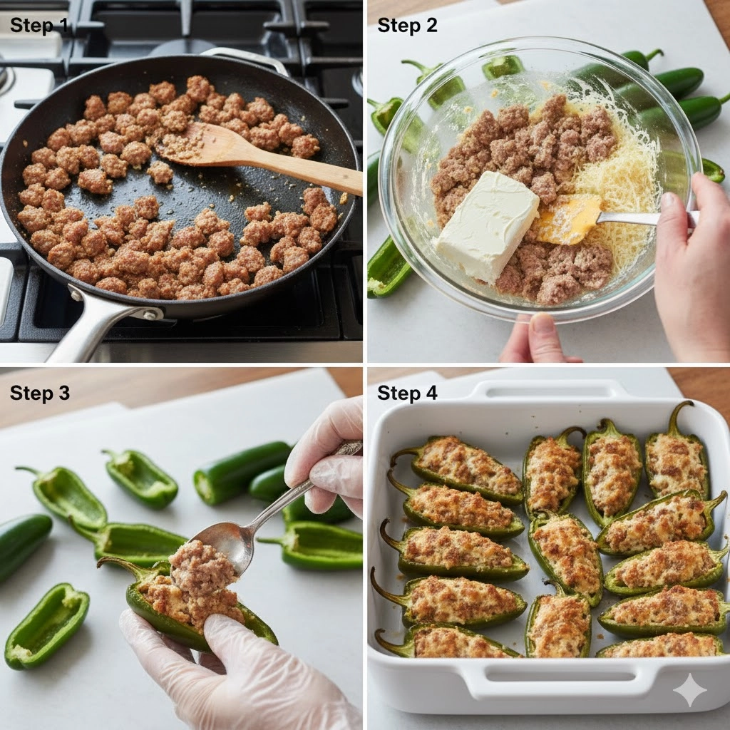 - Temperature Consistency: Ensure the sausage has cooled slightly before mixing it with the cream cheese. If the meat is piping hot, it will melt the cheese into a liquid state immediately, making it difficult to neatly stuff the peppers.