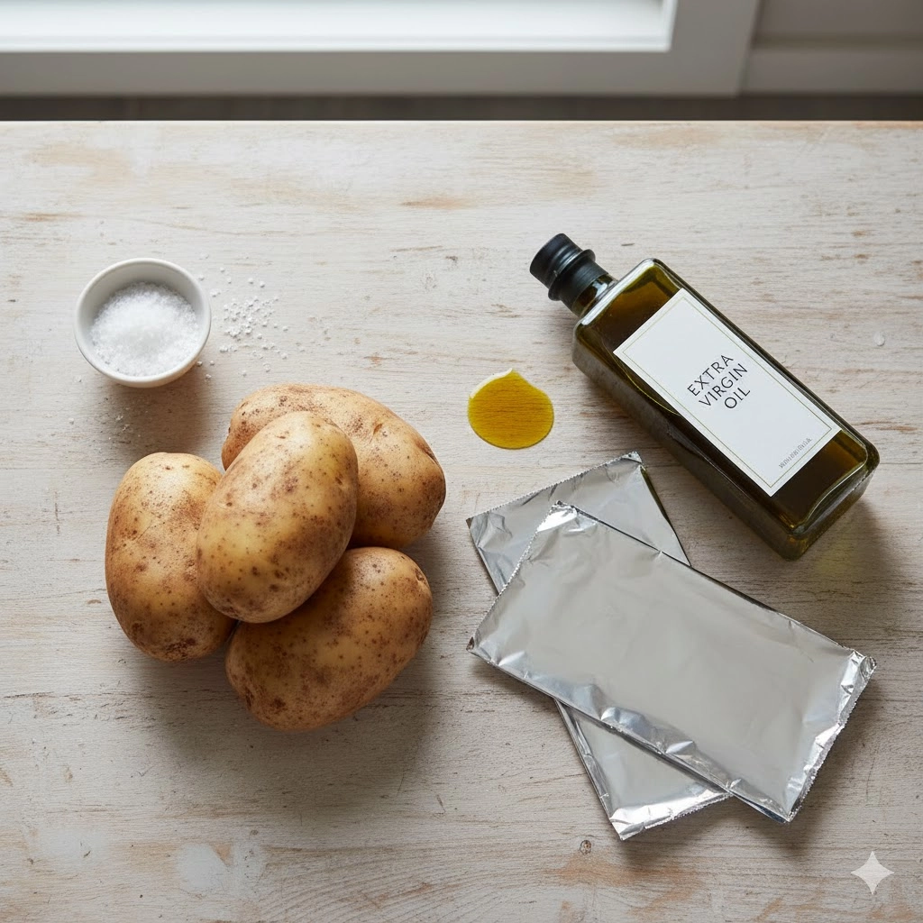 - 4 sheets aluminum foil: These act as individual pressurized chambers for each potato, locking in the steam.