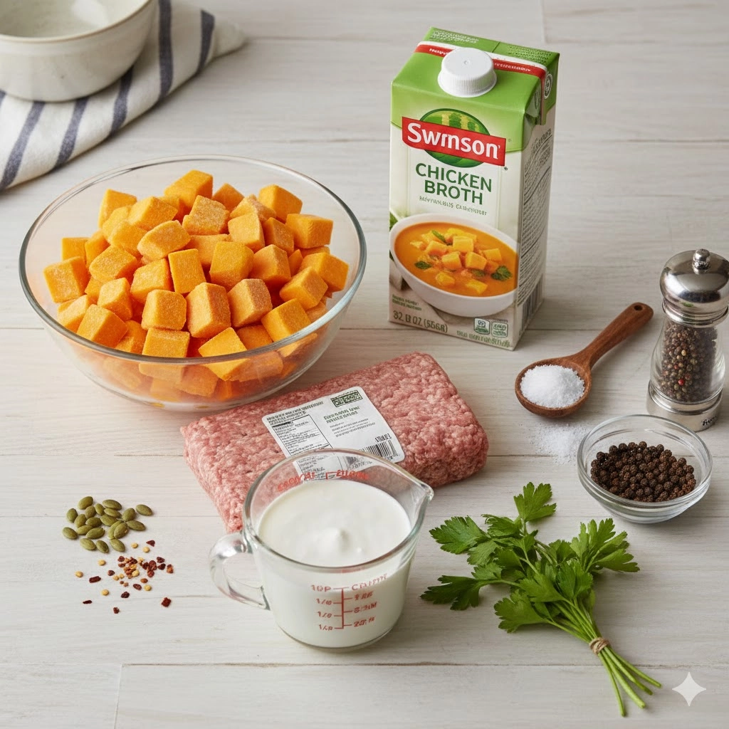 If you find that a small amount of oil still rises to the top during the long simmering process, do not panic. Use a large metal spoon to gently skim the surface. This “cleaning” of the broth ensures that the final addition of heavy cream creates a silky, unified texture rather than a broken or greasy appearance. Furthermore, consider the timing of your squash. Because frozen squash is often blanched before freezing, it softens more quickly than raw, fresh squash. If you decide to use fresh squash, remember that it may require an additional 30 minutes of cooking time to reach that perfect “melt-in-your-mouth” consistency.