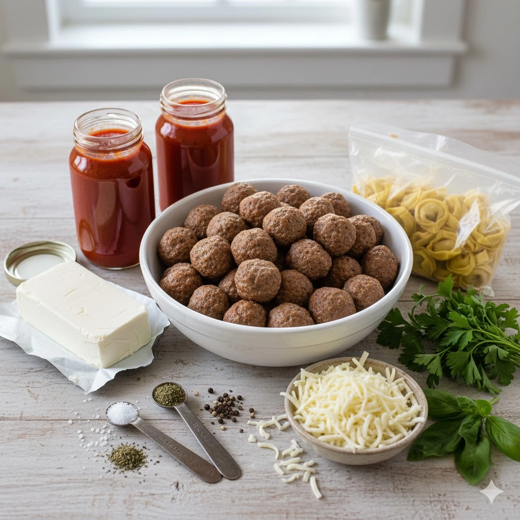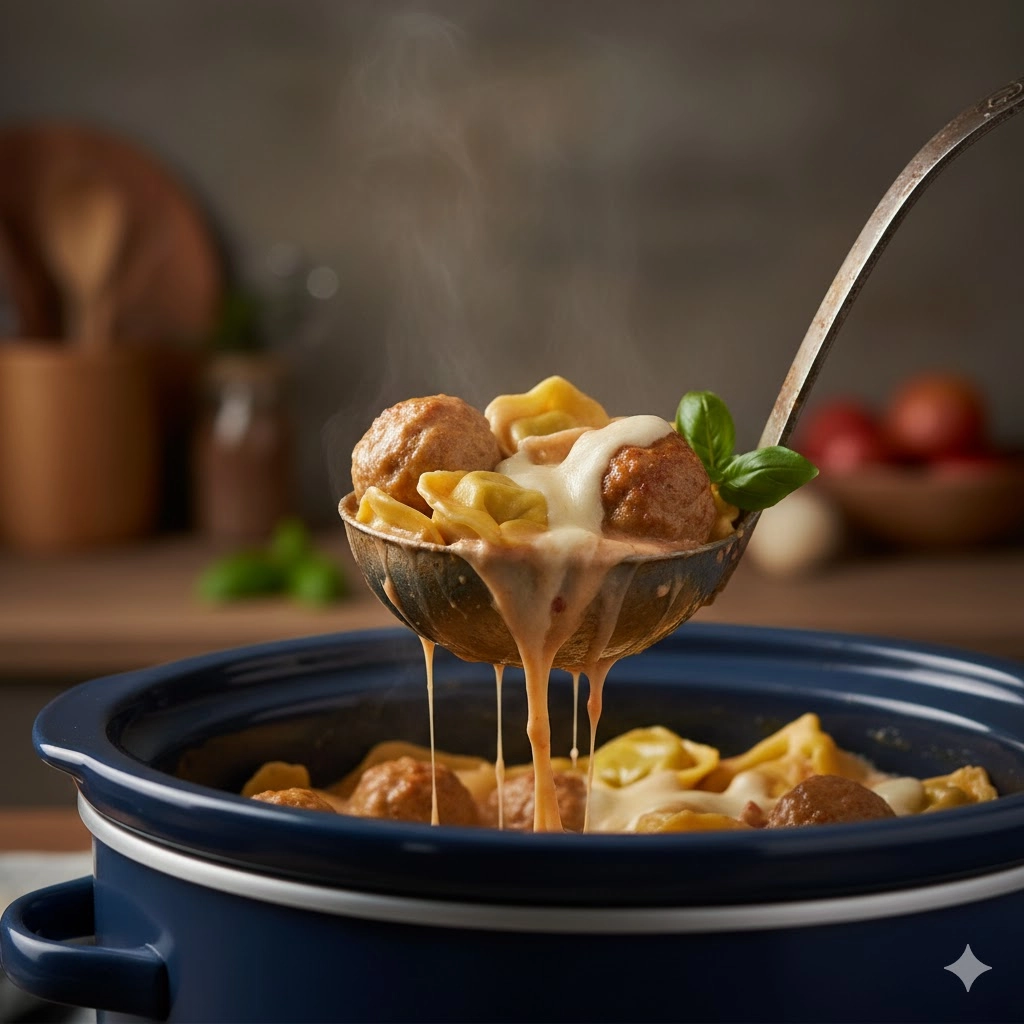 When the evening chill sets in and the schedule feels tighter than ever, there is a profound sense of relief in knowing that dinner is already simmering away in the kitchen. This recipe for Slow Cooker Tortellini Meatballs is the quintessential “set it and forget it” meal that transforms humble pantry staples into a gourmet, decadent feast. By combining hearty meatballs with cheese-filled pasta in a velvety, cream-cheese-infused marinara, you create a dish that appeals to both the picky eaters and the culinary enthusiasts in your home. It is a thick, indulgent, and deeply satisfying meal that requires less than five minutes of active preparation, allowing the slow cooker to do the heavy lifting of developing deep, Italian-inspired flavors.