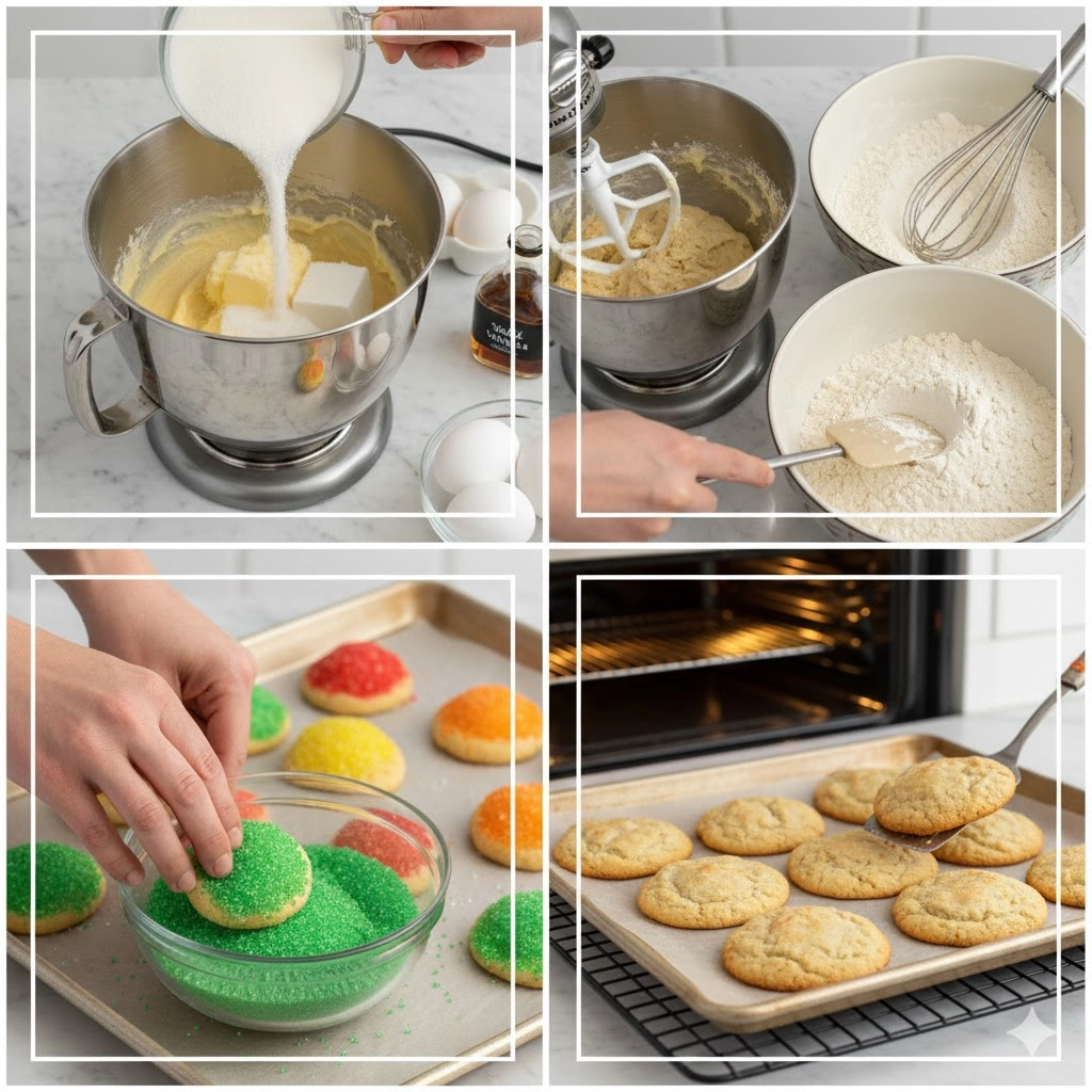 - Begin by gathering all your ingredients to ensure a smooth workflow. Preheat your oven to 350 degrees Fahrenheit. Prepare your decorating sugar by placing it into a small bowl; if you are using multiple colors, separate them into individual small dishes.